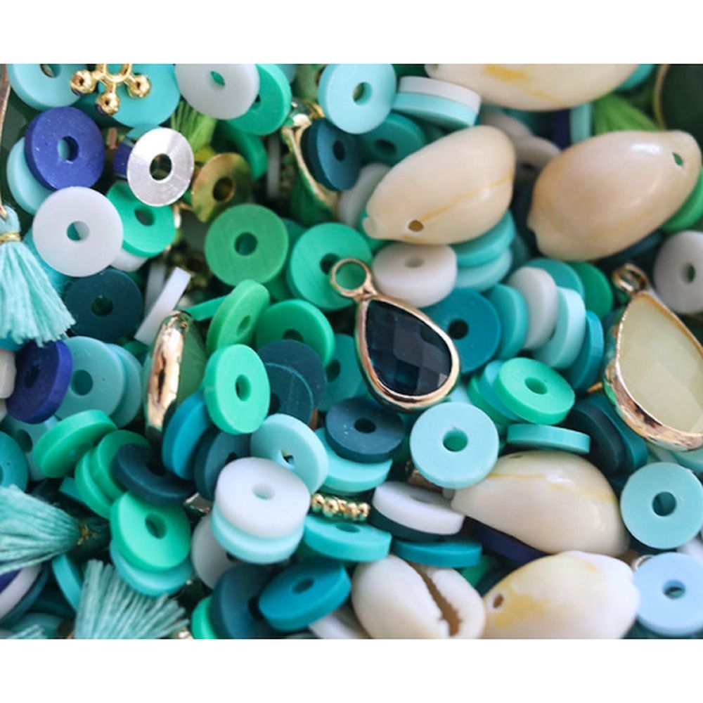 Αυτό το σετ Χαντρών Heishi και Μπρελόκ θα είναι ιδανικό για να δημιουργήσετε κοσμήματα με μοντέρνο και καλοκαιρινό στυλ! Το σακουλάκι αυτό μυρίζει διακοπές και χαλάρωση! Η La Petite Épicerie δημιούργησε αυτό το μοναδικό μείγμα χαντρών και μπρελόκ, για να φτιάξετε υπέροχα κοσμήματα με καλοκαιρινή διάθεση.