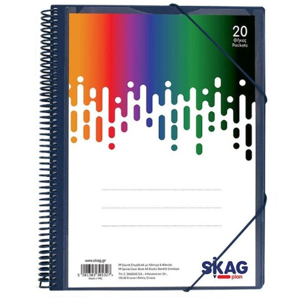 Premium ντοσιέ σουπλ σπιράλ μπλε με 20 ενσωματωμένες διαφάνειες και λάστιχο για να κλείνει, της skag.