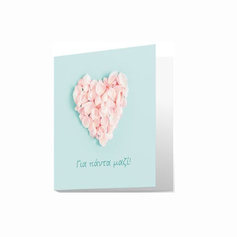 Χάρισε μία ευχετήρια κάρτα στα αγαπημένα σου πρόσωπα, γράφοντας ευχές για τη μοναδικότητα της ημέρας αυτής. Η κάρτα έχει λεκτικό "Για πάντα μαζί" είναι ανάγλυφη στο εξώφυλλο και χώρο στο εσωτερικό της για να αναπτύξετε τις ευχές σας.