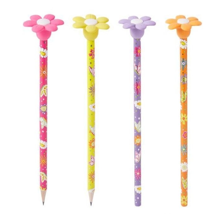 Μοναδικός σχεδιασμός με λουλούδια και ασημί foil λεπτομέρειες, σε συνδυασμό με μια γόμα σε σχήμα άνθους στην κορυφή. Ιδανικό για όλους τους λάτρεις των λουλουδιών!