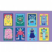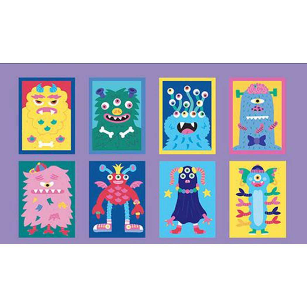 Περιλαμβάνει: 4 πίνακες διπλής όψης με διαφορετικά τερατάκια, σετ με αυτοκόλλητα και βιβλίο με οδηγίες.