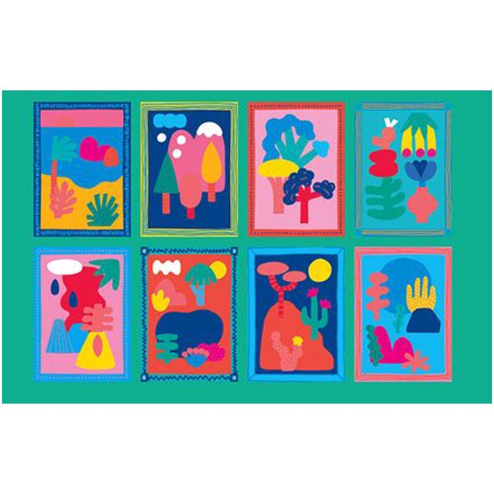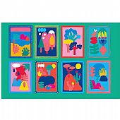 Περιλαμβάνει: 4 πίνακες τοπίων διπλής όψης σε pop αισθητική με διαφορετική θεματολογία το καθένα και φωτεινά αυτοκόλλητα για τις δημιουργίες.