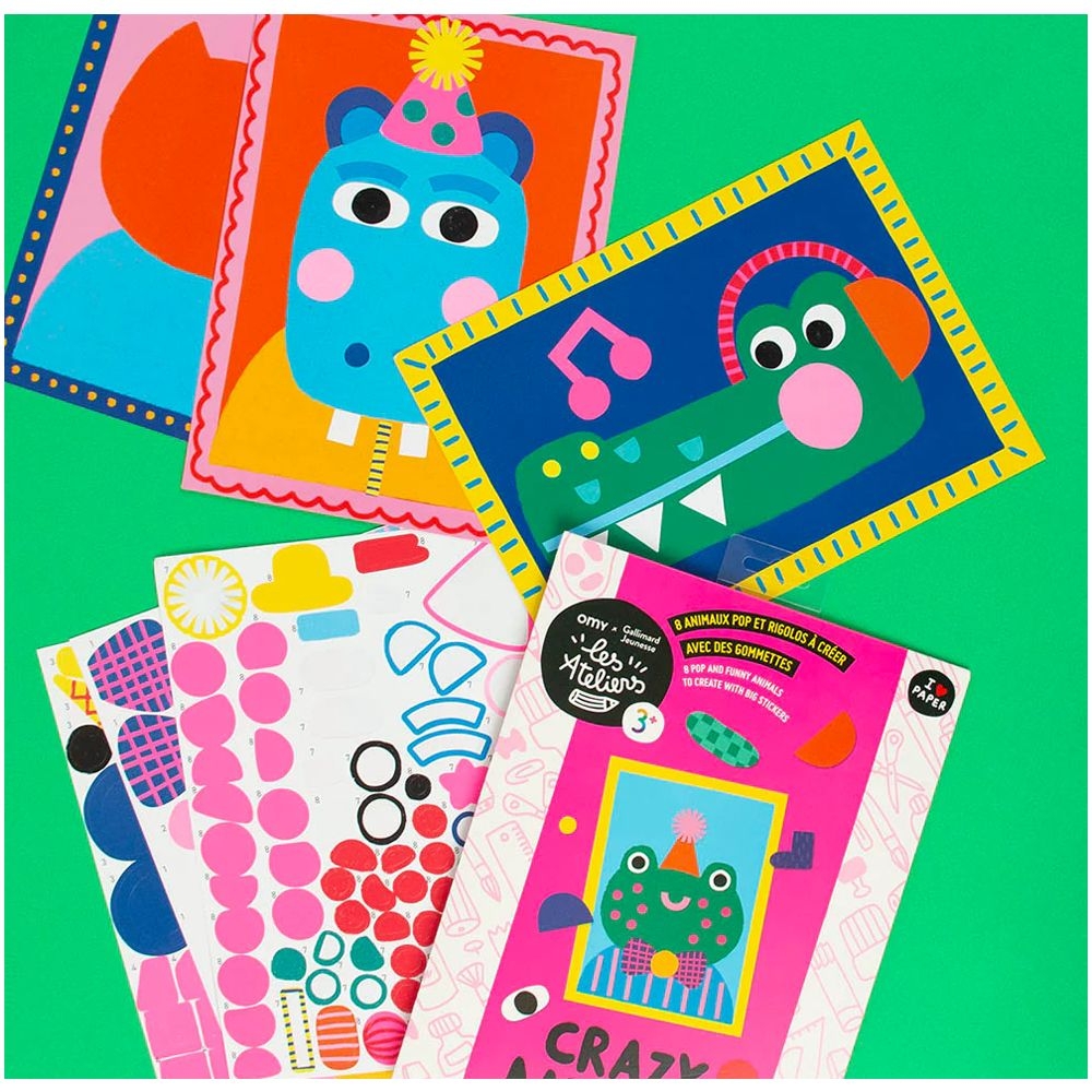 Το Crazy Animals είναι ένα ολοκληρωμένο δημιουργικό σετ που περιέχει 4 διπλής όψης κάρτες (συνολικά 8 πορτρέτα), πάνω στις οποίες τα παιδιά καλούνται να δημιουργήσουν πρωτότυπα πρόσωπα ζώων χρησιμοποιώντας αυτοκόλλητα. Οι φιγούρες είναι χαριτωμένες, παιχνιδιάρικες και εντελώς... τρελές, γι' αυτό και το παιχνίδι αποκτά μια μοναδική διαδραστική και απελευθερωτική διάσταση. Τα παιδιά μπορούν να ακολουθήσουν τα προτεινόμενα σχέδια ή να αφήσουν εντελώς ελεύθερη τη φαντασία τους και να "εφεύρουν" τα δικά τους... ζώα με ανθρώπινες ή φανταστικές εκφράσεις, μαλλιά, μάτια και αξεσουάρ.