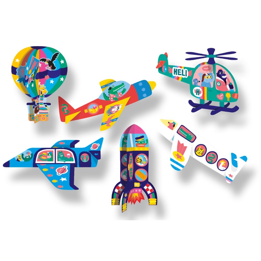 Δημιουργία 6 Ιπτάμενων Οχημάτων με Χαρτόνι! Ετοιμαστείτε για απογείωση σε 1, 2, 3, Go!! Αυτό το διασκεδαστικό και δημιουργικό creative box της σειράς Les Ateliers προσφέρει στα παιδιά την ευκαιρία να συναρμολογήσουν 6 εντυπωσιακά ιπτάμενα οχήματα με χαρτόνι και να τα διακοσμήσουν με αυτοκόλλητα. Από αεροπλάνα μέχρι φουτουριστικές ρουκέτες και αερόστατα, τα παιδιά έχουν τη δυνατότητα να φτιάξουν τον δικό τους στόλο αεροπορικών μέσων και να τους προσδώσουν τη δική τους μοναδική εμφάνιση! Με τη βοήθεια αυτού του πακέτου, τα παιδιά θα μάθουν πώς να δημιουργούν τα δικά τους αεροπορικά μέσα με απλά και διασκεδαστικά βήματα.