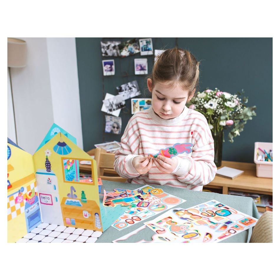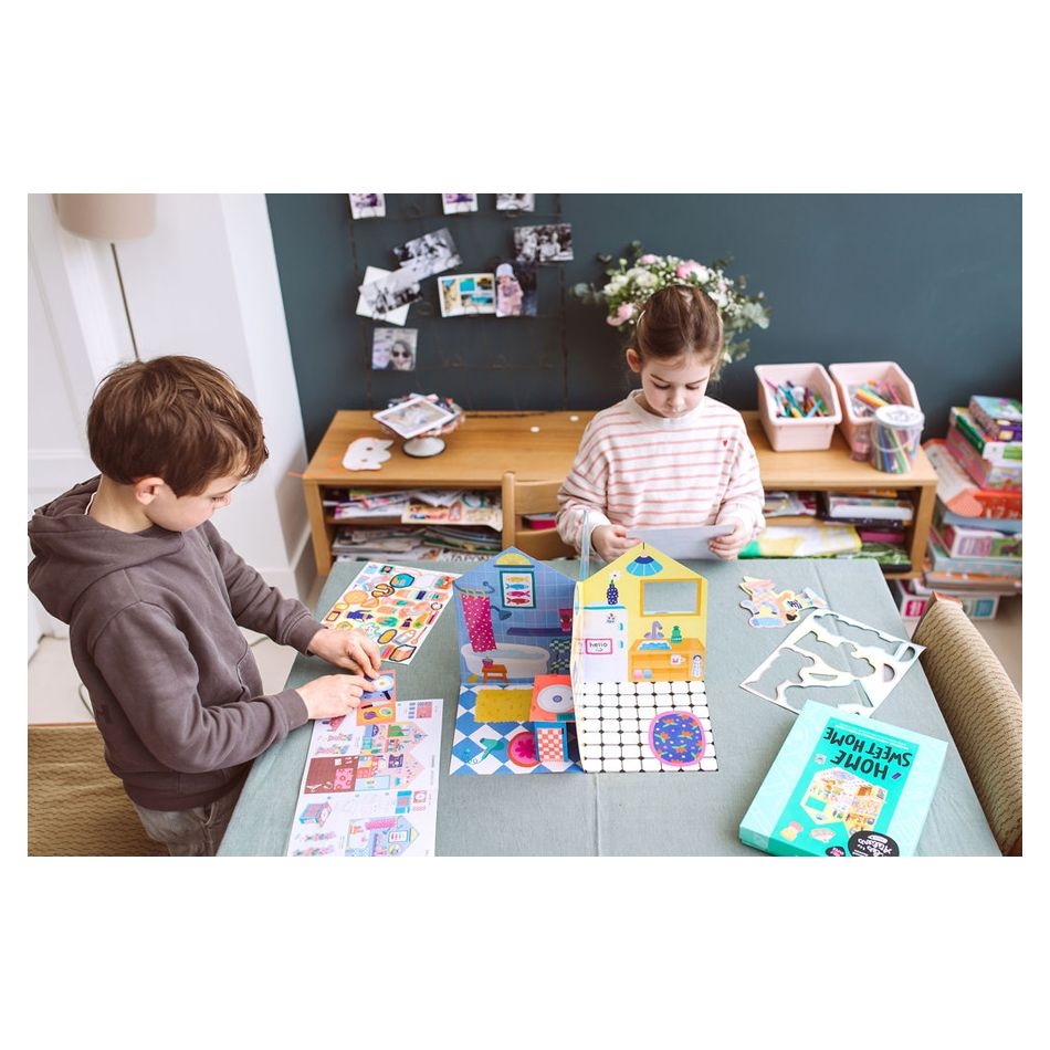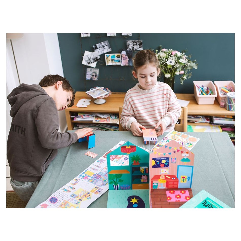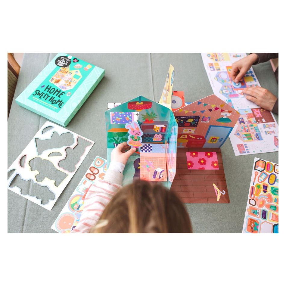 Η πιο γλυκιά χαρτονένια κατοικία για μικρούς ονειροπόλους! Καλώς ήρθατε στη χαριτωμένη, χάρτινη γειτονιά της OMY! Μετατρέψτε το σπίτι σε σκηνή θεάτρου, δημιουργίας και φανταστικού παιχνιδιού με το μοναδικό κιτ "Home Sweet Home" — μια καλλιτεχνική εμπειρία με γλυκές φιγούρες, φωτεινά αυτοκόλλητα και... πολλή φαντασία! Μόλις ανοίξετε το κυκλικό καρουζέλ, ξεδιπλώνεται μπροστά σας μια χαρτονένια κατοικία με 4 ξεχωριστά δωμάτια που περιμένουν να τα διακοσμήσετε και να τα ζωντανέψετε! Και το καλύτερο; Η κατασκευή διπλώνεται και μεταφέρεται εύκολα, ώστε το παιδί να την παίρνει παντού!