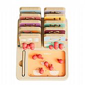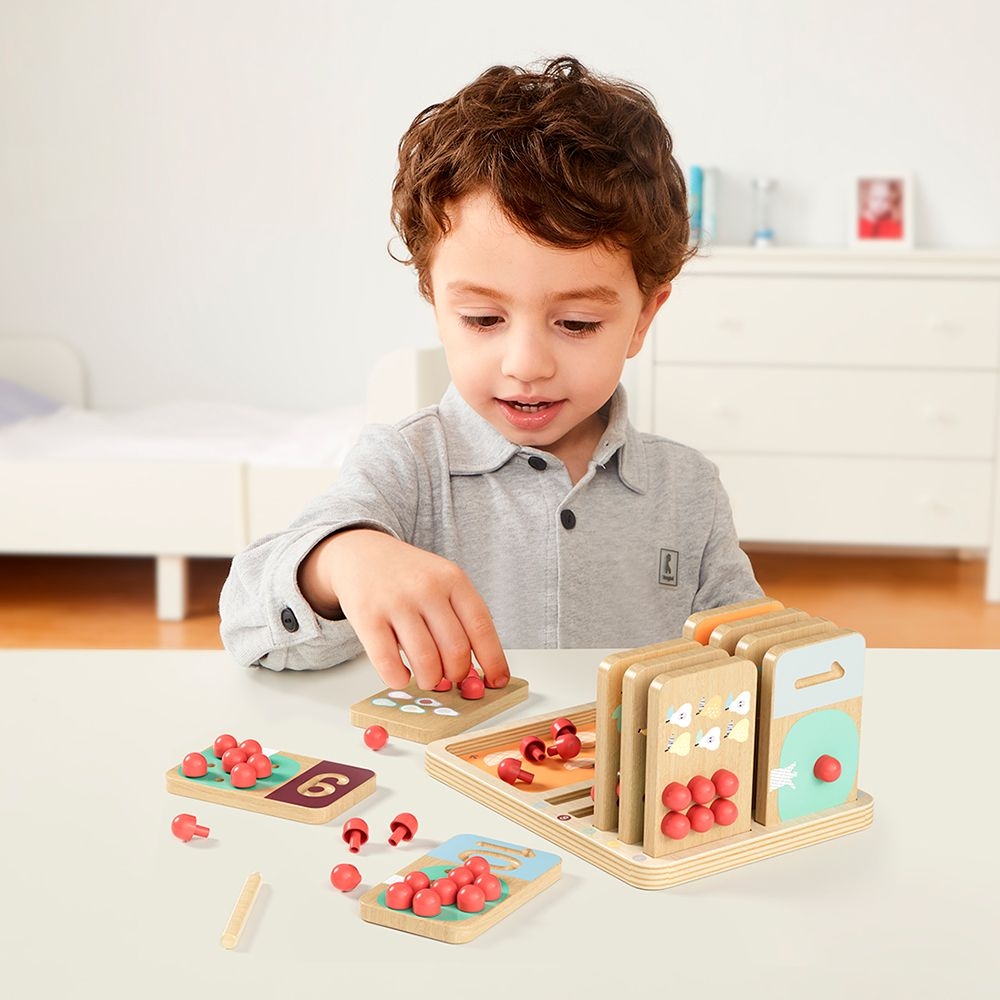 Πλεονεκτήματα του εκπαιδευτικού σετ:Μαθαίνει στα παιδιά να μετρούν και να γράφουν αριθμούς, να αναγνωρίζουν χρώματα και φρούτα. Ενισχύει τη συγκέντρωση, την υπομονή και τις λεπτές κινητικές δεξιότητες. Σχεδιασμένο για να διατηρείται η τάξη κατά και μετά το παιχνίδι. Ανθεκτική κατασκευή για μακροχρόνια χρήση. Σύμφωνα με τη φιλοσοφία Montessori: ενθαρρύνει τη δημιουργικότητα, την ελεύθερη ανάπτυξη και τη λογική σκέψη. Κατασκευασμένο από ασφαλή υλικά.