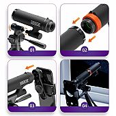 - Τοποθέτησε το κινητό σου στο τηλεσκόπιο και φωτογράφισε τις ανακαλύψεις σου.