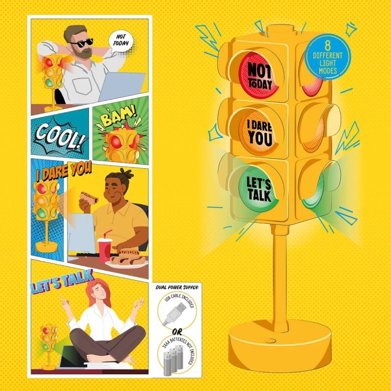 Είναι καλή στιγμή για να σε διακόψουν; Δώσε σήμα στους συναδέλφους σου με το Επιτραπέζιο Φανάρι – Too Busy or Not Too Busy από τη Legami! Είσαι απασχολημένος; Ρύθμισε το LED φως στο κόκκινο – κανείς δεν θα τολμήσει να σου μιλήσει. Έτοιμος για κουβεντούλα; Άναψε το πράσινο και καλωσόρισε τους άλλους. Γίνε ο "τροχονόμος" του γραφείου!
