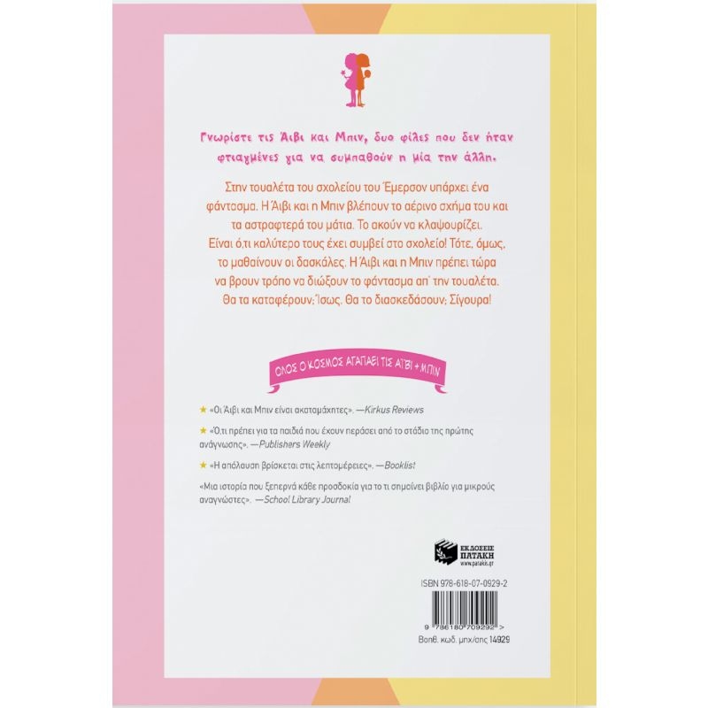 Γνωρίστε τις Άιβι και Μπιν, δυο φίλες που δεν ήταν φτιαγμένες για να συμπαθούν η μία την άλλη. Στην τουαλέτα του σχολείου του Έμερσον υπάρχει ένα φάντασμα. Η Άιβι και η Μπιν βλέπουν το αέρινο σχήμα του και τα αστραφτερά του μάτια. Το ακούν να κλαψουρίζει. Είναι ό,τι καλύτερο τους έχει συμβεί στο σχολείο! Τότε όμως, το μαθαίνουν οι δασκάλες. Η Άιβι και η Μπιν πρέπει τώρα να βρουν τρόπο να διώξουν το φάντασμα απ’ την τουαλέτα. Θα τα καταφέρουν; Ίσως. Θα το διασκεδάσουν; Σίγουρα!