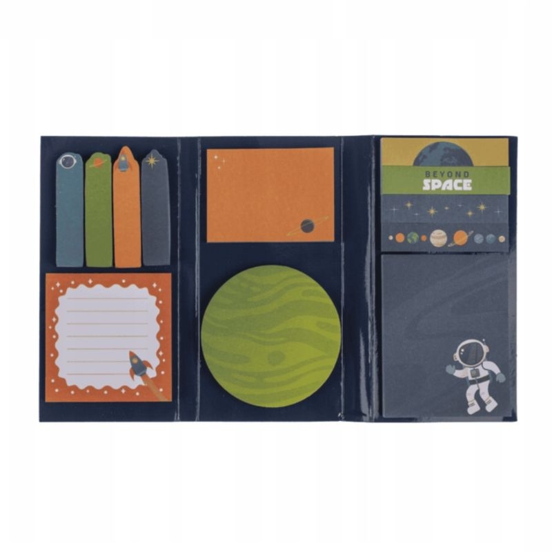 Αυτό το μοναδικό σετ από διαστημικά sticky notes είναι απαραίτητο για λάτρεις της αστρονομίας, μικρούς και μεγάλους φίλους του διαστήματος ή απλώς για όποιον θέλει να δώσει μια κοσμική πινελιά στην καθημερινότητά του. Ιδανικό για μαθητές, εκπαιδευτικούς, υπαλλήλους γραφείου ή δημιουργικά μυαλά που θέλουν να "παρκάρουν" τις σκέψεις τους σε ένα άλλο σύμπαν.