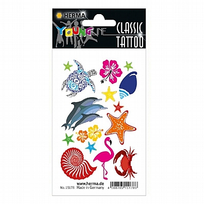 Τα τατουάζ δεν χρειάζεται να είναι μόνιμα: τα αυτοκόλλητα τατουάζ δημιουργούν ευφάνταστα μοτίβα στο δέρμα, αλλά μόνο προσωρινά. Φιλικό προς το δέρμα, εύκολο στην εφαρμογή και ακόμα πιο εύκολο στην αφαίρεση: αυτά είναι τα πιο κουλ αυτοκόλλητα τατουάζ από την HERMA. Κόψτε το επιλεγμένο τατουάζ, αφαιρέστε την προστατευτική μεμβράνη και τοποθετήστε το στο μέρος του δέρματος που θέλετε, πιέστε σταθερά με ένα υγρό χαρτομάντιλο για 30 δευτερόλεπτα και ξεφλουδίστε αυτό είναι όλο. Τα τατουάζ είναι αδιάβροχα και διαρκούν αρκετές ημέρες στο δέρμα. Αφαιρούνται επίσης πολύ εύκολα: απλά βάλτε λίγο λάδι σε ένα χαρτομάντιλο και σκουπίστε απαλά το τατουάζ και θα αφαιρεθεί χωρίς να αφήσει υπολείμματα.