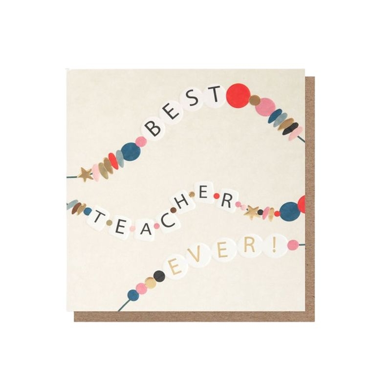 Ευχετήρια κάρτα με λεκτικό "Best Teacher Ever" και χώρο μέσα στην κάρτα για να αναπτύξετε τις ευχές σας από την Rachel Ellen.