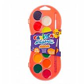Carioca νερομπογιές, 12 neon χρωμάτων διαμέτρου 30mm. Μέσα σε ανθεκτική κασετίνα και δώρο πινέλο. Πλούσια και ζωντανά χρώματα, υψηλής ποιότητας. Με ειδική τεχνολογία ώστε τα χρώματα να στεγνώνουν φυσικά χωρίς να χάνεται η ποιότητα των υλικών. Το καπάκι μπορεί να αφαιρεθεί πλήρως για να χρησιμοποιηθεί ως μια παλέτα.