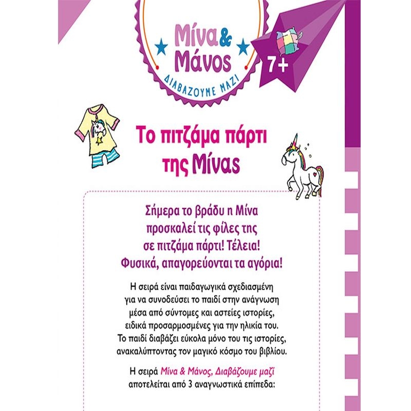 Σήμερα το βράδυ η Μίνα προσκαλεί τις φίλες της σε πιτζάμα πάρτι! Τέλεια! Φυσικά, απαγορεύονται τα αγόρια! Η σειρά είναι παιδαγωγικά σχεδιασμένη για να συνοδεύσει το παιδί στην ανάγνωση μέσα από σύντομες και αστείες ιστορίες, ειδικά προσαρμοσμένες για την ηλικία του. Το παιδί διαβάζει εύκολα μόνο του τις ιστορίες, ανακαλύπτοντας τον μαγικό κόσμο του βιβλίου.