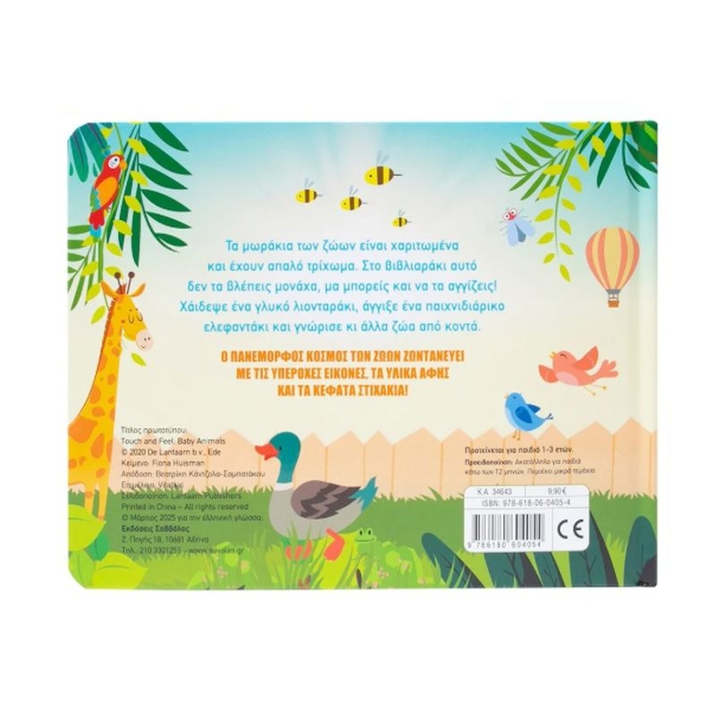 Τα μωράκια των ζώων είναι χαριτωμένα και έχουν απαλό τρίχωμα. Στο βιβλιαράκι αυτό δεν τα βλέπεις μονάχα, μα μπορείς και να τα αγγίζεις! Χάιδεψε ένα γλυκό λιονταράκι, άγγιξε ένα παιχνιδιάρικο ελεφαντάκι και γνώρισε κι άλλα ζώα από κοντά. Ο πανέμορφος κόσμος των ζώων ζωντανεύει με τις υπέροχες εικόνες, τα υλικά αφής και τα κεφάτα στιχάκια!