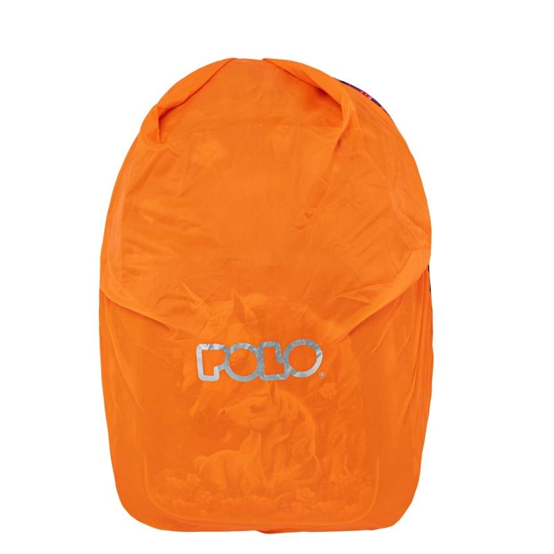 - Αδιάβροχο κάλυμμα, σε κρυφή τσέπη στη βάση του σακιδίου, σε έντονο πορτοκαλί ή κίτρινο χρώμα με τυπωμένο το λογότυπο POLO για καλύτερη ορατότητα.