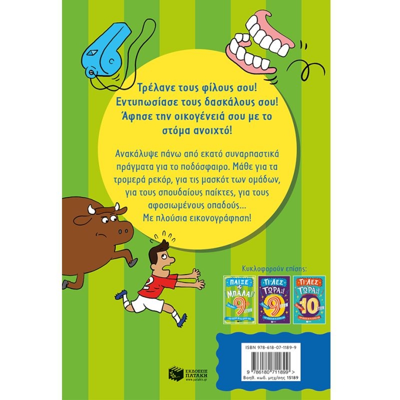 Τρέλανε τους φίλους σου! Εντυπωσίασε τους δασκάλους σου! Άφησε την οικογένειά σου με το στόμα ανοιχτό! Ανακάλυψε πάνω από εκατό συναρπαστικά πράγματα για το ποδόσφαιρο. Μάθε για τα τρομερά ρεκόρ, για τις μασκότ των ομάδων, για τους σπουδαίους παίκτες, για τους αφοσιωμένους οπαδούς…Με πλούσια εικονογράφηση!