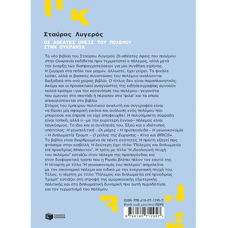Το νέο βιβλίο του Σταύρου Λυγερού «Οι αθέατες όψεις του πολέμου στην Ουκρανία» εκδίδεται πριν τερματιστεί ο πόλεμος, αλλά μετά την έναρξη των διαπραγματεύσεων για μία συνθήκη ειρήνης. Η ζυγαριά στα πεδία των μαχών, άλλωστε, έχει γείρει. Το φινάλε λείπει, αλλά οι βασικές συνιστώσες του πολέμου αναλύονται διεξοδικά στο ανά χείρας βιβλίο. Ο τίτλος δεν είναι παραπλανητικός. Ακόμα και οι προσεκτικοί αναγνώστες της ειδησεογραφίας αγνοούν πολλά κρίσιμα –για την κατανόηση του πολέμου– γεγονότα που έμειναν στο σκοτάδι ή πέρασαν στα “ψιλά” και τα οποία αποκαλύπτονται στο βιβλίο. Στόχος του έμπειρου πολιτικού αναλυτή και συγγραφέα είναι να δώσει μία σφαιρική εικόνα και ανάλυση ενός πολέμου που μπορούσε και έπρεπε να είχε αποφευχθεί. Η πολυαίμακτη σύρραξη είναι τοπική, αλλά ο –με την ευρύτερη έννοια πόλεμος είναι παγκόσμιος. Το ίδιο και οι συνέπειές του. Εξού και ο ιδιότυπος υπότιτλος: Η γεωπολιτική – Οι μάχες – Η προπαγάνδα – Η γεωοικονομία – Η διπλωματία Τραμπ – Ο ρόλος της Ευρώπης – Κίνα και BRICS+. Το βιβλίο είναι διαρθρωμένο σε πέντε ενότητες: Η πρώτη με τίτλο “Τα πριν της εισβολής”. Η δεύτερη με τίτλο “Πόλεμος και διπλωματία επί προεδρίας Μπάιντεν”. Η τρίτη με τίτλο “Η ιδεολογική πτυχή του πολέμου” εστιάζει στον πόλεμο της προπαγάνδας και στον διαφορετικό τρόπο που η Ρωσία βλέπει πλέον τον εαυτό της. Η τέταρτη με τίτλο “Η γεωοικονομία του πολέμου” ασχολείται με τον οικονομικό πόλεμο και ειδικά με την ενεργειακή πτυχή του. Τέλος, η πέμπτη με τίτλο “Πόλεμος και διπλωματία επί προεδρίας Τραμπ” εστιάζει στη στροφή της αμερικανικής εξωτερικής πολιτικής και στη διπλωματική δυναμική που αυτή πυροδότησε για τον τερματισμό του πολέμου.
