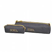 Κασετίνα βαρελάκι & πορτοφολάκι - Grey & Gold - Polo Wallet Dos