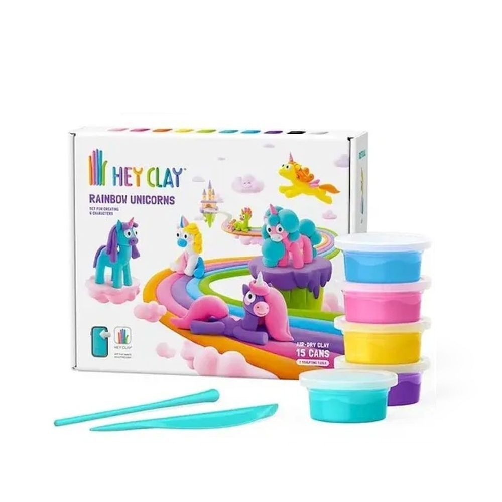 Κατασκευάστε τους αγαπημένους σας μονόκερους, αφήστε 20 λεπτά το πηλό να σταθεροποιηθεί και μετά από 24 ώρες θα έχει μετατραπεί σε ένα καινούργιο παιχνίδι. Κατεβάστε την εφαρμογή για κινητά και έξυπνες συσκευές για να βρείτε οδηγούς δημιουργίας και διάφορα υπέροχα κινούμενα σχέδια τα οποία θα καθοδηγούν τα παιδιά στο να δημιουργούν ευφάνταστους και πρωτότυπους χαρακτήρες. Η σειρά προϊόντων Hey Clay δημιουργήθηκε για να αναπτύξει τις δεξιότητες των παιδιών και να τα βοηθήσει να να καλλιεργήσουν την δημιουργική τους σκέψη.