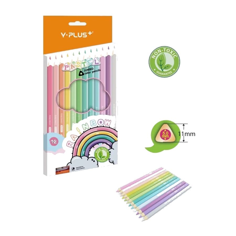 Ξυλομπογιές Jumbo 12 Pastel Rainbow χρωμάτων - Y-Plus+