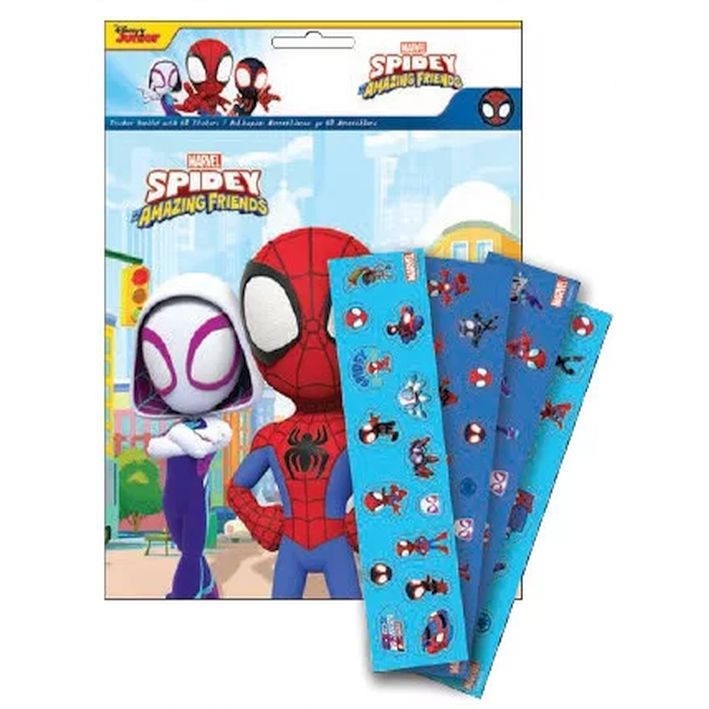 Άλμπουμ 50 αυτοκόλλητων της εταιρείας Marvel με σχέδιο Spidey τα οποία αποτελούν μια καλή επιλογή διασκέδασης και δημιουργικότητας για τα παιδιά. Βοηθούν στην ανάπτυξη της λεπτής κινητικότητας καθώς απαιτούνται προσεκτικές κινήσεις ώστε να ξεκολλήσουν σωστά χωρίς να σκιστούν.