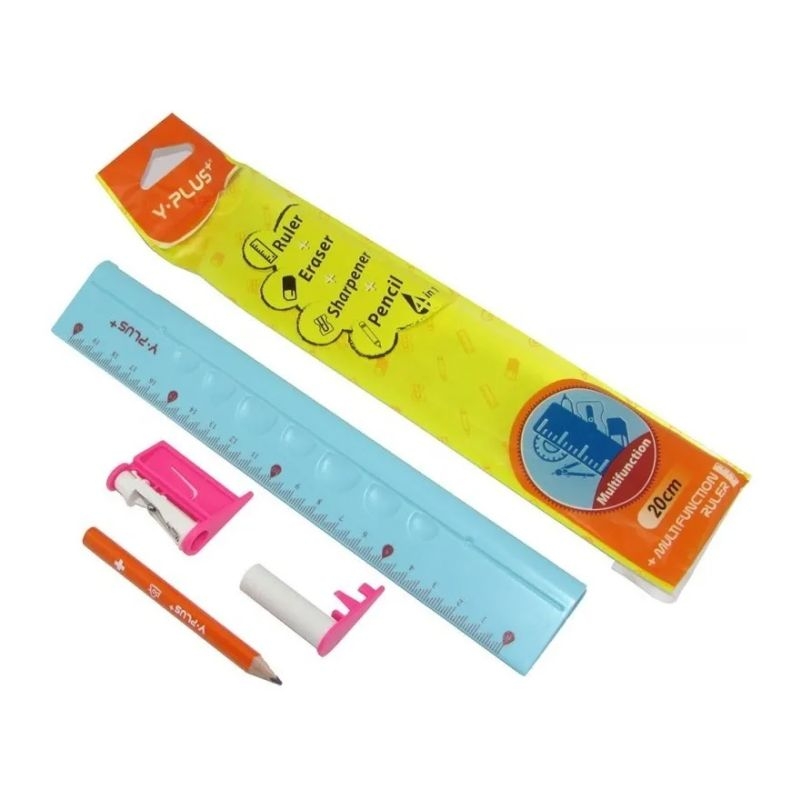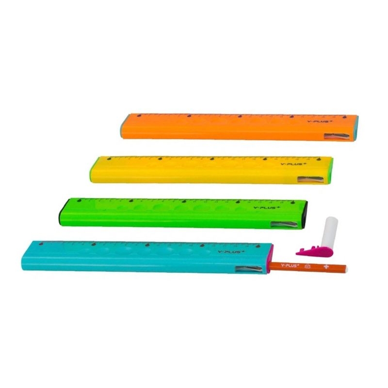 Πολυλειτουργικός Χάρακας 4 σε 1 (Χάρακας 20cm, Ξύστρα, Γόμα & Μολύβι) - Y-Plus+