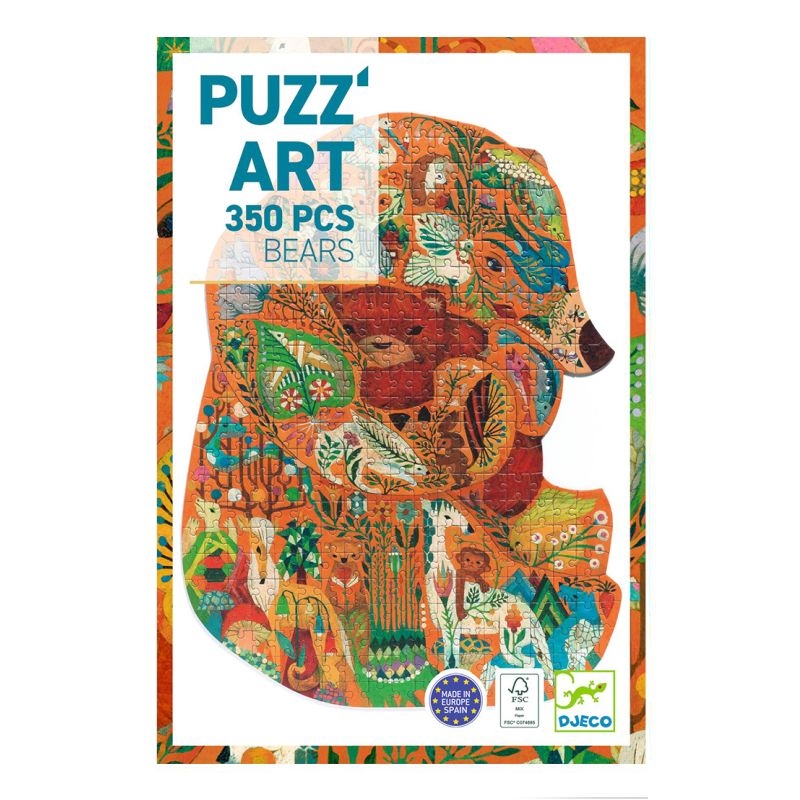 Το Puzz’Art Bear από την Djeco είναι ένα ξεχωριστό παζλ 350 κομματιών, που επαναπροσδιορίζει την έννοια του κλασικού παζλ! Χωρίς γωνίες και πλαίσια, με εντυπωσιακό σχήμα αρκούδας, μετατρέπει τη συναρμολόγηση σε καλλιτεχνική εμπειρία. Μέσα στην αρκούδα ξεδιπλώνεται ένας ολόκληρος φανταστικός κόσμος, γεμάτος λεπτομέρειες και μαγικές εικόνες που περιμένουν να ανακαλυφθούν. Το σετ περιλαμβάνει και αφίσα-οδηγό, για να βοηθά το παιδί να ολοκληρώσει το παζλ με σιγουριά και χαρά. Ένα υψηλής ποιότητας παζλ, κατασκευασμένο στην Ευρώπη, που συνδυάζει δημιουργικότητα, φαντασία και πρόκληση. Ένα παζλ που δεν μοιάζει με κανένα άλλο ιδανικό για παιδιά που αγαπούν τις λεπτομέρειες, την τέχνη και τη φαντασία!