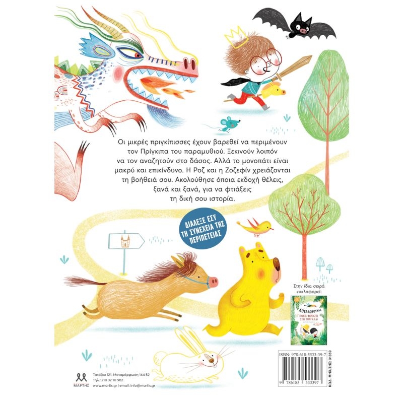 Οι μικρές πριγκίπισσες έχουν βαρεθεί να περιμένουν τον Πρίγκιπα του παραμυθιού. Ξεκινούν λοιπόν να τον αναζητούν στο δάσος. Αλλά το μονοπάτι είναι μακρύ και επικίνδυνο. Η Ροζ και η Ζοζεφίν χρειάζονται τη βοήθειά σου. Ακολούθησε όποια εκδοχή θέλεις, ξανά και ξανά, για να φτιάξεις τη δική σου ιστορία.