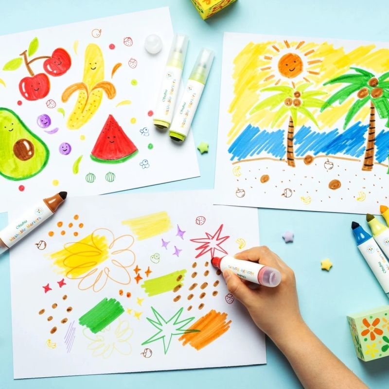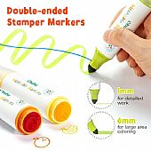 Το σετ περιλαμβάνει 12 έντονα, ζωηρά χρώματα με μελάνι με βάση το νερό, που καθαρίζεται εύκολα από δέρμα και υφάσματα — ιδανικό για ατελείωτο, ξέγνοιαστο παιχνίδι. Χάρη στον καινοτόμο σχεδιασμό με διπλή μύτη, κάθε μαρκαδόρος επιτρέπει λεπτές και χοντρές γραμμές, ανάλογα με την κλίση, καλύπτοντας τόσο τις λεπτομέρειες όσο και μεγάλες επιφάνειες. Στο πάνω μέρος τους θα βρείτε μια χαριτωμένη σφραγίδα με σχέδιο φρούτου, για ακόμα πιο δημιουργικές στιγμές. Το σετ έρχεται σε ένα μοναδικά σχεδιασμένο, φορητό τσαντάκι με την υπογραφή της Ohuhu – ανθεκτικό και φιλικό προς τα παιδιά, ιδανικό για να το παίρνουν παντού μαζί τους!
