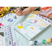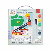 Περιλαμβάνει: 1 εργονομικό πινέλο, 6 δοχεία με φυσικές νερομπογιές με καπάκι, 1 αυτοκόλλητο προστατευτικό τραπεζιού και καμβά ζωγραφικής.