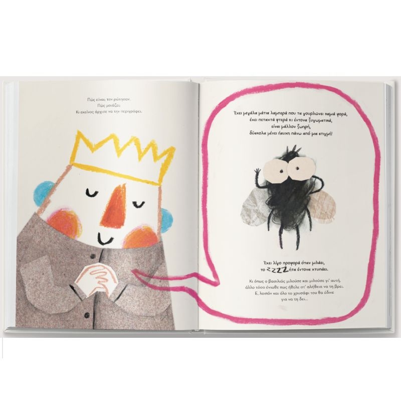 Αυτή είναι η ιστορία ενός βασιλιά και μίας μύγας που ήρθαν κοντά. Αυτή είναι η ιστορία για ένα μικρό (ή μεγάλο) παιδί. Και ένα ΖΖΖΖΖΖ που μπορεί να ακουστεί. Είναι η ιστορία για μία φιλία. Μία ιστορία που θέλει να πει ότι από όλα του κόσμου τα πράγματα πιο ψηλά, πιο πολύτιμα είναι τα πλάσματα. Πάντα. Στο τώρα, το χτες, το αύριο. Και σε κάθε εποχή. Υπάρχει κάτι πιο όμορφο από τον χρόνο που περνάμε μαζί;
