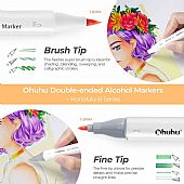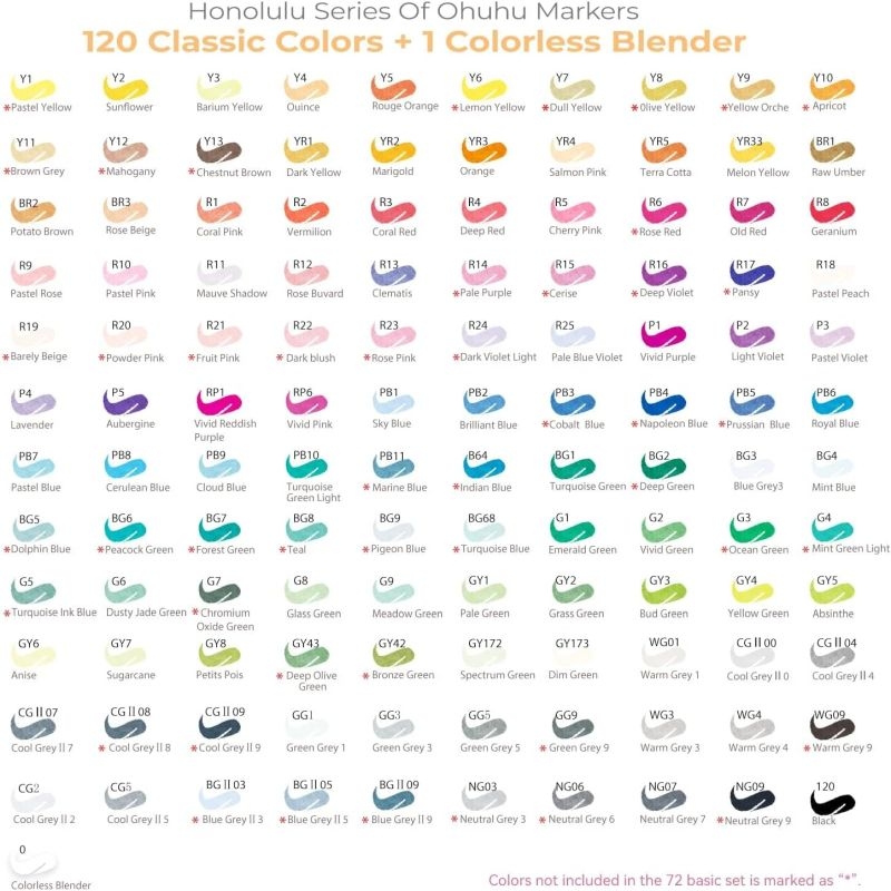 Art Markers: Σετ Μαρκαδόρων Honolulu B Alcohol - Brush & Fine (120 χρωμάτων+1 Blender) - Ohuhu
