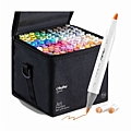 Το σετ διατίθεται σε υπέροχη μαύρη υφασμάτινη κασετίνα και περιλαμβάνει 105 μαρκαδόρους (104 χρώματα και 1 άχρωμο Blender) με διπλή μύτη Brush & Fine που έχουν ως βάση την αλκοόλη. Είναι κατάλληλοι για εικονογράφηση και σχέδιο. Ιδανικό για παιδιά και ενήλικες