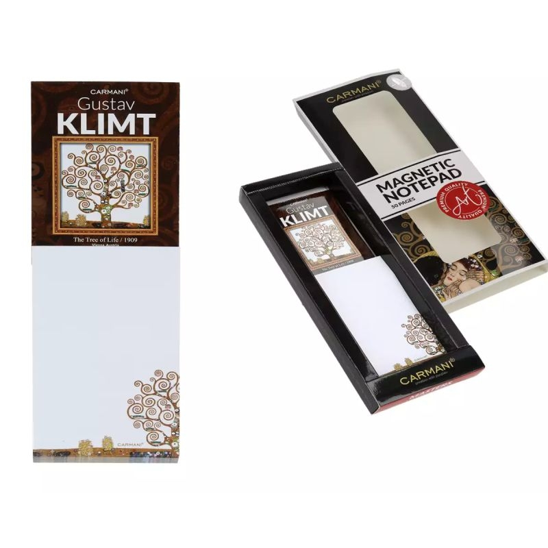 Ένα πρακτικό σημειωματάριο με 50 φύλλα και μαγνήτη, ιδανικό για να τοποθετείται στο ψυγείο ή σε οποιαδήποτε μεταλλική επιφάνεια, προσθέτοντας στυλ και οργάνωση στον χώρο σας. Με φόντο τον εμβληματικό πίνακα "Tree of Life" του Gustav Klimt, αυτό το σημειωματάριο συνδυάζει τη λειτουργικότητα με την τέχνη. Προσθέτει στυλ και πολιτιστική αισθητική στην κουζίνα ή το γραφείο σας, ενώ παραμένει εξαιρετικά χρηστικό στην καθημερινότητά σας.