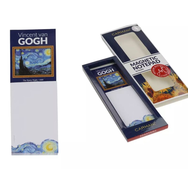 Ένα πρακτικό σημειωματάριο με 50 φύλλα και μαγνήτη, ιδανικό για να τοποθετείται στο ψυγείο ή σε οποιαδήποτε μεταλλική επιφάνεια, προσθέτοντας στυλ και οργάνωση στον χώρο σας. Με φόντο τον εμβληματικό πίνακα "Starry Night" του V.Gogh, αυτό το σημειωματάριο συνδυάζει τη λειτουργικότητα με την τέχνη. Προσθέτει στυλ και πολιτιστική αισθητική στην κουζίνα ή το γραφείο σας, ενώ παραμένει εξαιρετικά χρηστικό στην καθημερινότητά σας.