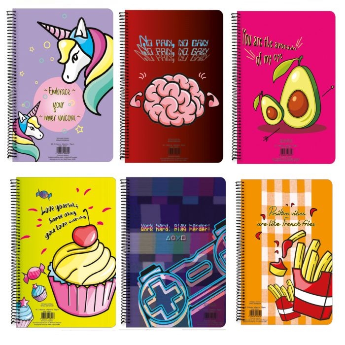 Τετράδιο σπιράλ 3 θεμάτων της σειράς A&G. Διαθέτεi εξώφυλλο από χαρτόνι και 90 ριγέ φύλλα 70gr.