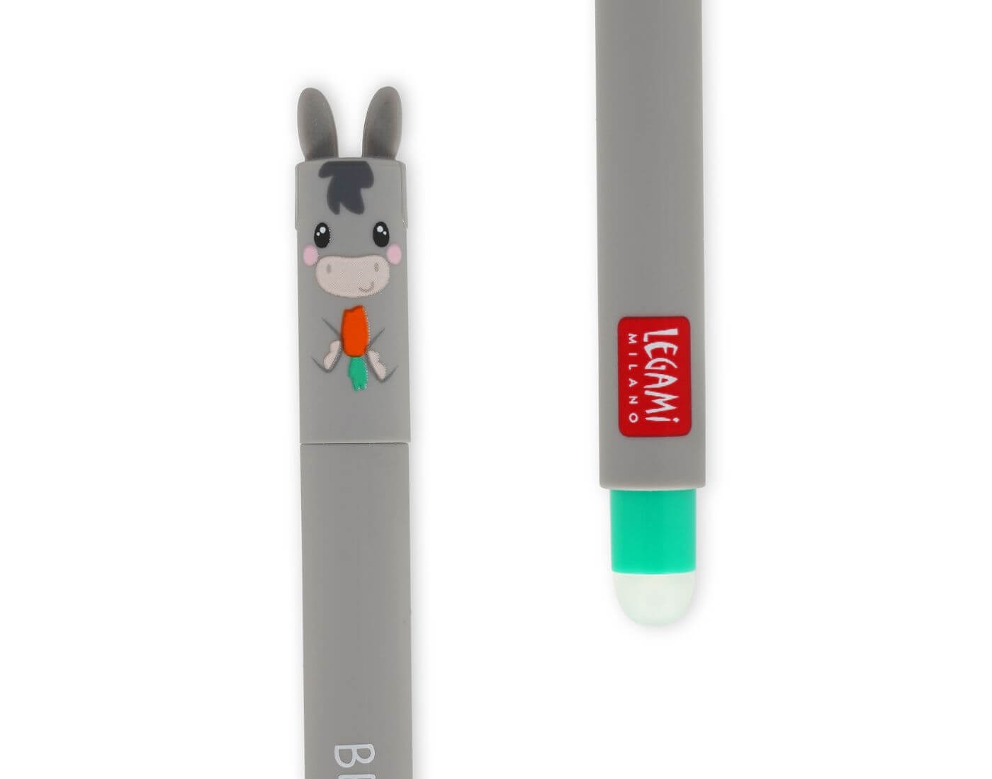 Ένα ιδιαίτερο στυλό της εταιρίας Legami με σχέδιο Donkey! Το ειδικό μελάνι είναι ευαίσθητο στην θερμότητα, ώστε να μπορείτε να σβήνετε τα λάθη σας τρίβοντας τη με την ειδική σβήστρα στο πίσω μέρος! Η σβήστρα δε φθείρεται όπως οι συνηθισμένες σβήστρες!