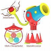 Ανακαλύψτε το «Ball Blaster Water Canon» της Yookidoo, που εκτοξεύει νερό και πετάει βόλους μέσα από έναν στόχο, μετατρέποντας το μπάνιο σε μια διασκεδαστική και διαδραστική εμπειρία! Το κανόνι νερού και ο στόχος προσαρμόζονται εύκολα στη μπανιέρα χρησιμοποιώντας ισχυρές βεντούζες, εξασφαλίζοντας μια εύκολη και γρήγορη εγκατάσταση. Το κανόνι μπορεί να χειριστεί και να ρυθμιστεί για να στοχεύσει ακριβώς στο στόχο, επιτρέποντας στα παιδιά να εξασκηθούν στην ευστοχία τους και να βελτιώσουν τη συντονισμένη τους κίνηση. Το παιχνίδι ενδυναμώνει επίσης την έννοια της δοκιμής και του λάθους, ενώ ταυτόχρονα εισάγει τα παιδιά στη σχέση αιτίου και αποτελέσματος. Έχει σχεδιαστεί για να ενισχύσει την αυτοπεποίθηση των παιδιών και ενθαρρύνει τη συνεργασία κατά τη διάρκεια του παιχνιδιού, κάνοντάς το ιδανικό για κοινές στιγμές διασκέδασης στην μπανιέρα. Επιπλέον, περιλαμβάνει ένα πρακτικό καλάθι αποθήκευσης που προσαρμόζεται απευθείας στη μπανιέρα, διευκολύνοντας τη γρήγορη και εύκολη αποθήκευση.