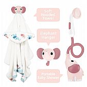 Σετ Μπάνιου Μωρού με Φορητό Ντουζ, Πετσέτα με Κουκούλα & Κρεμάστρα - Elephant Baby Shower Bath Set (Pink) - Yookidoo