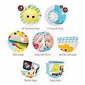 Ανακαλύψτε το «Lights 'N' Music Baby Book» ένα διαδραστικό βιβλίο της Yookidoo. Παρακολουθήστε τα δέκα πρόσωπα που αναβοσβήνουν με τη σειρά και προωθήστε τις βασικές μυϊκές δεξιότητες του μωρού σας, καθώς και την οπτική παρακολούθηση και την αντίληψη του βάθους του. Ακούστε καθώς το βιβλίο ξεκινά να παίζει κλασσική μουσική του πασίγνωστου Chopin για απόλυτη χαλάρωση και διέγερση (επαναλαμβανόμενες μελωδίες διάρκειας δέκα λεπτών η καθεμία) προάγοντας τις ακουστικές δεξιότητες του μωρού. Το βιβλίο μπορεί επίσης να ρυθμιστεί σε σίγαση για αθόρυβο παιχνίδι. Δείξε στο μωρό σας τις πολλαπλές υφές και τα διαφορετικά χρώματα, παίξτε κρυφτό και κοιταχτείτε στον καθρέφτη, για να ενισχύσετε την αισθητηριακή και απτική του ανάπτυξη.