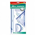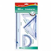 Η συσκευασία περιλαμβάνει: 1 χάρακα 30cm, 2 τρίγωνα (1 ισόπλευρο και 1 ορθογώνιο) και 1 μοιρογνωμόνιο. Ιδανικά για χρήση στη γεωμετρία και στο σχέδιο για παιδιά μικρής ηλικίας.