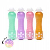 Περιλαμβάνει: 4 μαρκαδόρους με αφρώδη μύτη σε αποχρώσεις: μοβ, ροζ, πράσινο και κίτρινο και ένα πολύχρωμο και ασφαλές εργαλείο ζωγραφικής που μετατρέπει κάθε χαρτί σε καμβά γεμάτο πέρλες και φαντασία!