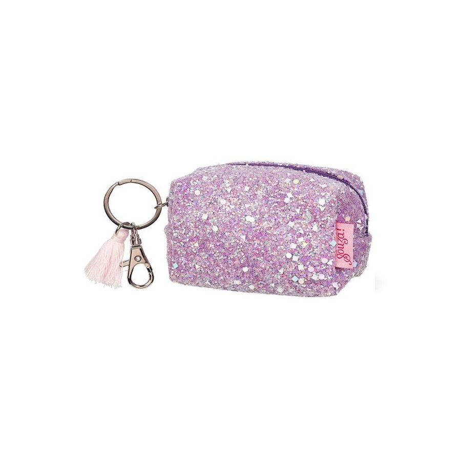 Το πορτοφολάκι Lyna της ολλανδικής εταιρείας Souza! είναι ένα μικρό αλλά αρκετά ευρύχωρο αξεσουάρ. Κλείνει με φερμουάρ και είναι καλυμμένο με μεγάλα σωματίδια μωβ ιριδίζουσας γκλίτερ λάμψης. Στο φερμουάρ διαθέτει κρίκο μπρελόκ, μεταλλικό γαντζάκι (καραμπίνερ) και διακοσμητικό ανοιχτό ροζ φουντάκι. Είναι ιδανικό για να αποθηκεύσετε μικροαντικείμενα, όπως σχολικά είδη, κλειδιά, χαρτζιλίκι και ό,τι άλλο χρειάζεται το παιδί καθημερινά. Ταιριάζει τέλεια να το κρεμάσετε σε σακίδιο ή να το χρησιμοποιείτε καθημερινά. Αποτελεί επίσης μια εξαιρετική επιλογή για δώρο.