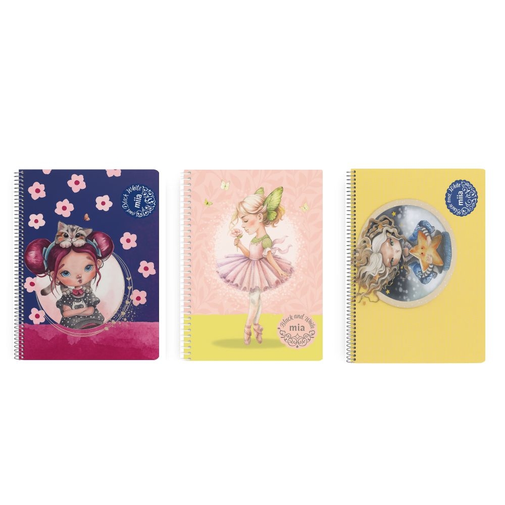 Τετράδιο σπιράλ με 1 θέμα της σειράς Miia σε 3 σχέδια, από την Black&White. Διαθέτει εξώφυλλο από χαρτόνι και 30 ριγέ φύλλα 70 γραμμαρίων.