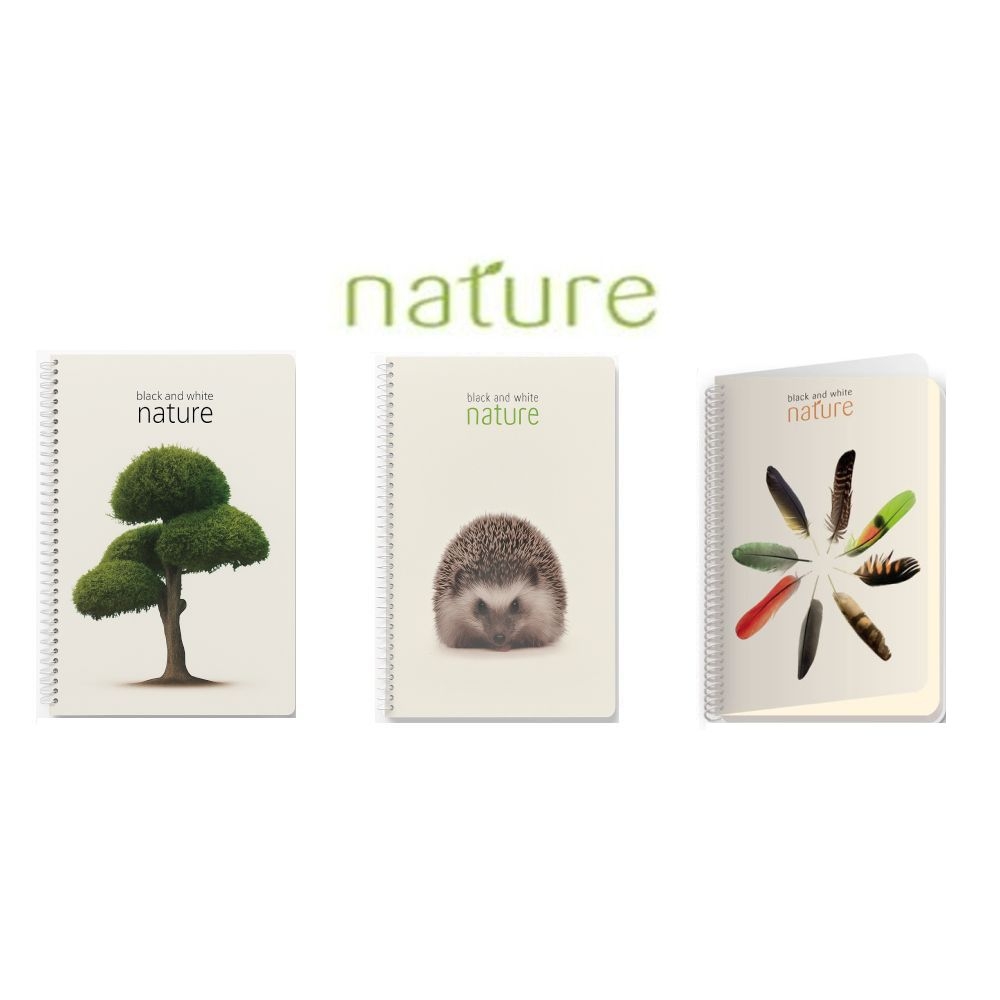 Τετράδιο σπιράλ 3 θεμάτων της σειράς Nature από την Black&White σε 3 σχέδια. Διαθέτει εξώφυλλο από σκληρό χαρτόνι και 150 ριγέ φύλλα 70gr.