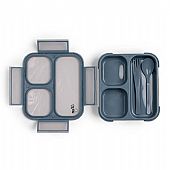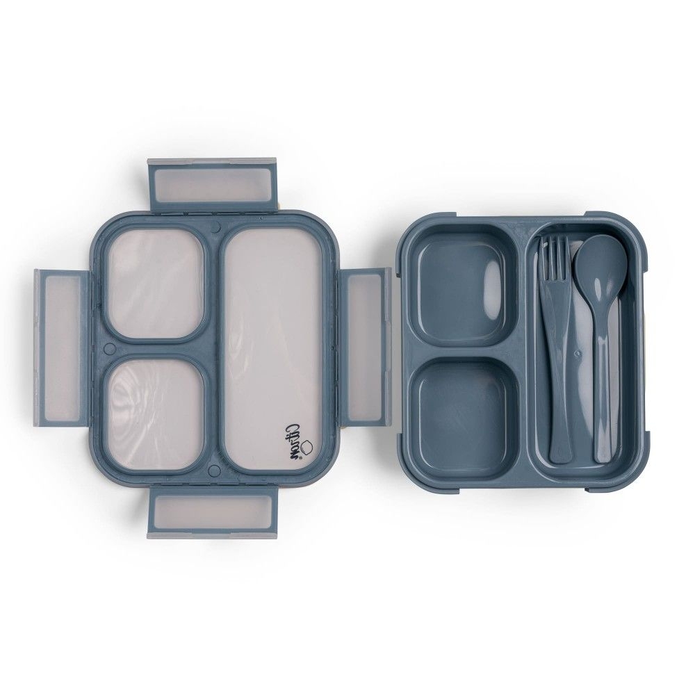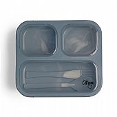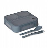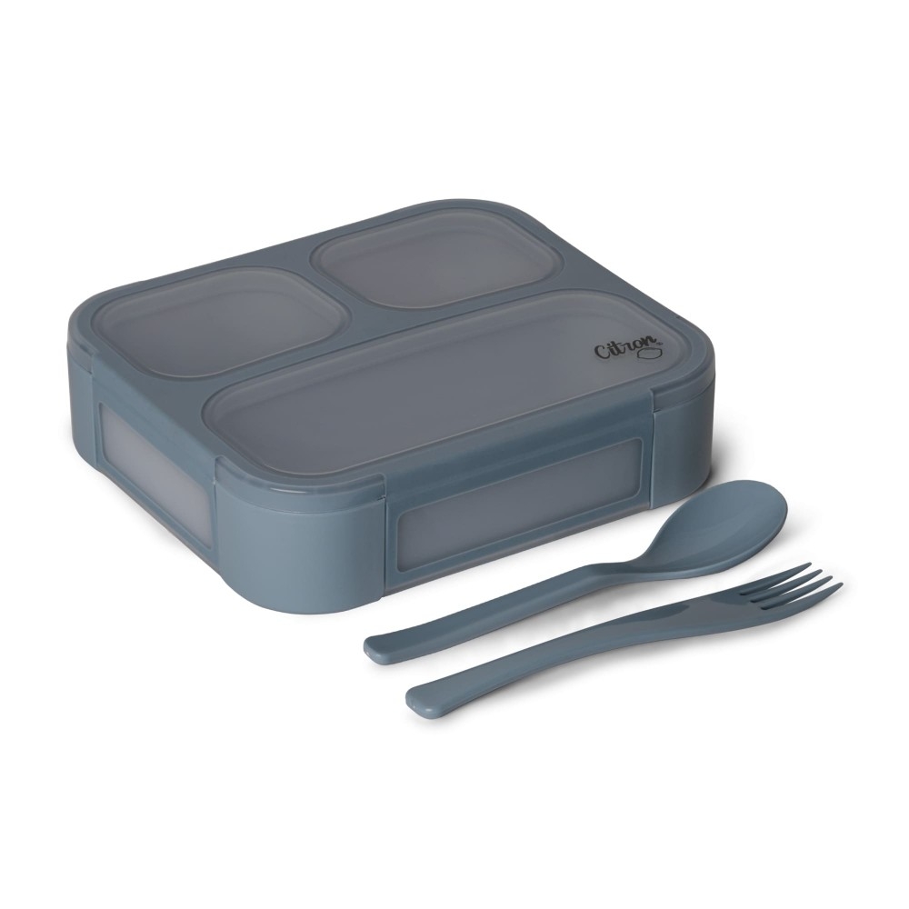 Φαγητοδοχείο Πλαστικό με Διαχωριστικά, Κουτάλι & Πιρούνι - Dusty Blue (600ml) - Citron