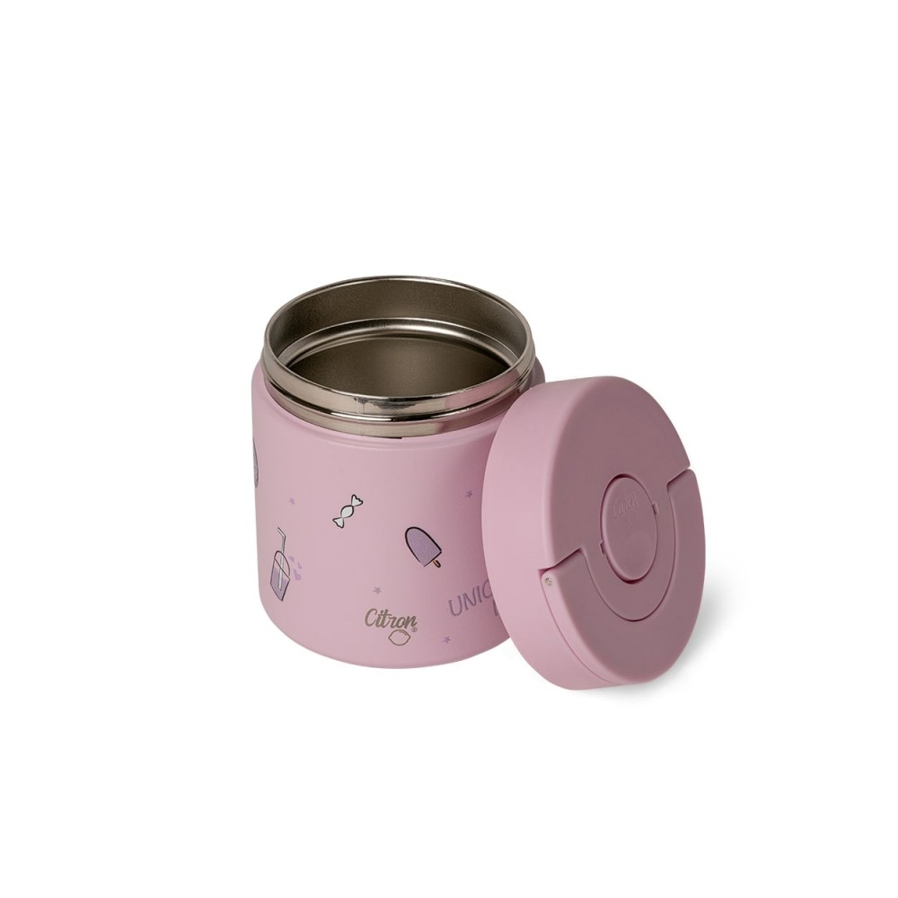 Το πολυαγαπημένο Classic Thermal Food Jar, της εταιρείας Citron, σε νέο σχέδιο. Το μεσαίου μεγέθους φαγητοδοχείο που δεν είναι ούτε πολύ μεγάλο ούτε πολύ μικρό, είναι το ιδανικό σκεύος για το σχολείο, την εκδρομή ή το τη βόλτα. Διαθέτει τριπλό τοίχωμα ώστε να εξασφαλίζει ότι το φαγητό παραμένει ζεστό για έως και 6 ώρες και κρύο για έως και 7 ώρες. Είναι απολύτως στεγανό για να μην υπάρχει κίνδυνος διαρροής και διαθέτει επένδυση με αφαιρούμενη σιλικόνη για ευκολία στον καθαρισμό. Το καινοτόμο εργονομικό του καπάκι είναι ειδικά σχεδιασμένο για να διευκολύνει τη χρήση από μικρότερα παιδιά, ενώ το μεγάλο άνοιγμα τα βοηθά να πιάνουν το φαγητό τους χωρίς κανένα πρόβλημα. Το φαγητοδοχείο είναι κατασκευασμένο από χάλυβα ποιότητας τροφίμων 304 για μακροχρόνια χρήση. Δεν περιέχει τοξικά υλικά όπως BPA, φθαλικές ενώσεις και μόλυβδο.