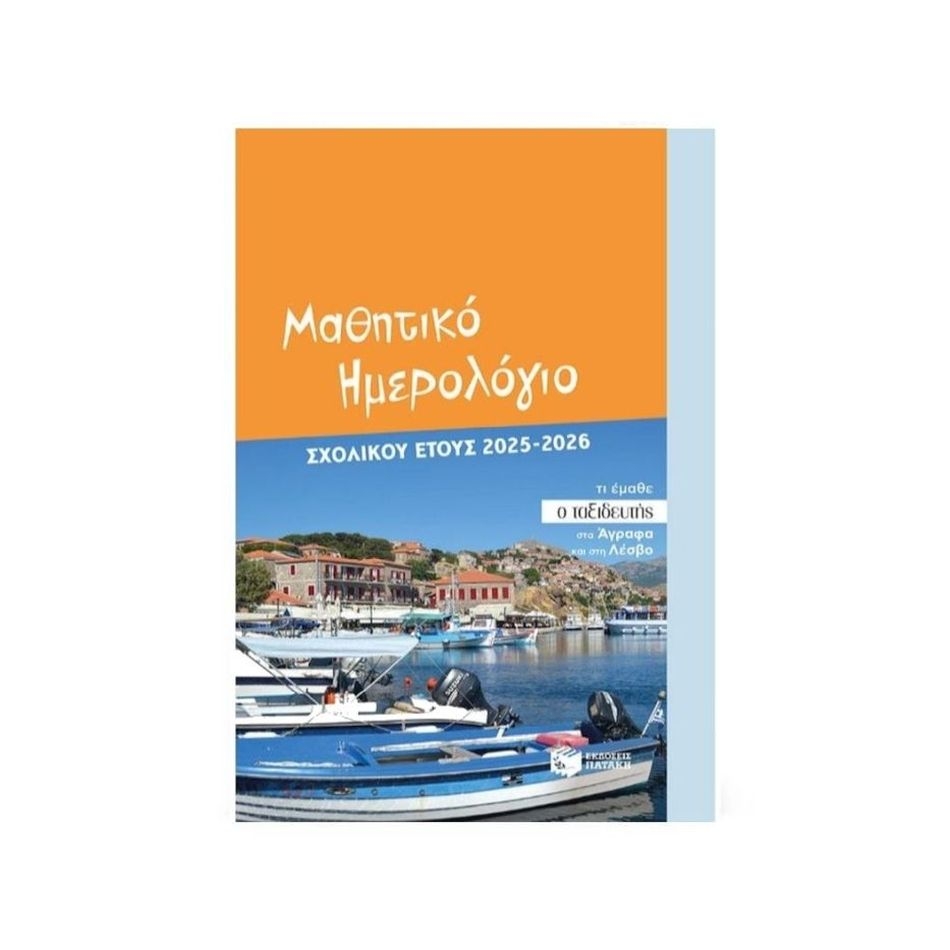 Όπως κάθε χρόνο, οι Εκδόσεις Πατάκη εκδίδουν το εβδομαδιαίο μαθητικό ημερολόγιο. Ξεκινά τον Σεπτέμβριο του 2025 και τελειώνει τον Αύγουστο του 2026. Ο μαθητής μπορεί να σημειώσει όλες τις δραστηριότητές του και τις ημερομηνίες που έχουν σημασία γι’ αυτόν. Αναφέρονται οι κυριότερες θρησκευτικές εορτές, οι παγκόσμιες ημέρες, καθώς και επιλεγμένες επέτειοι. Επιπλέον, σε ειδικά θεματικά σαλόνια, το ημερολόγιο περιέχει υλικό που προσελκύει, διασκεδάζει και μορφώνει τον αναγνώστη. Και φέτος το ημερολόγιο συνοδεύεται από πλούσιο φωτογραφικό υλικό, προσφορά του φίλου μας του «ταξιδευτή», από τα Άγραφα και τη Λέσβο.