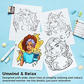 Ανακαλύψτε τον ιδανικό τρόπο για να χαλαρώσετε και να εκφραστείτε δημιουργικά με αυτό το μοναδικό βιβλίο ζωγραφικής Portraits of Joy! Με προσεκτικά σχεδιασμένα πορτρέτα και απλές, έντονες γραμμές, προσφέρει μια απολαυστική εμπειρία ζωγραφικής για όλες τις ηλικίες – χωρίς το άγχος των υπερβολικά λεπτομερών σχεδίων. Καθεμία από τις 20 σελίδες (40 όψεις) είναι κατασκευασμένη από ειδικό χαρτί βάρους 260 gsm, το οποίο αποτρέπει το μελάνι από το να διαπερνά τις σελίδες. Έτσι, μπορείτε να χρωματίσετε και τις δύο πλευρές με απόλυτη σιγουριά. Ιδανικό για χρήση με μαρκαδόρους αλκοολικής ή υδατοδιαλυτής βάσης.
